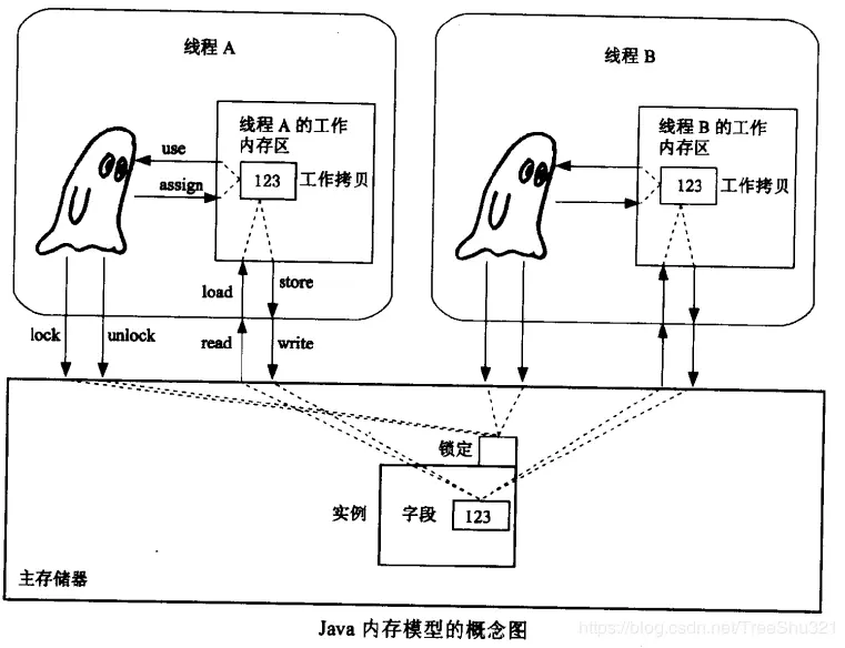 load(载入):作用于工作内存的变量,把read传输的变量值放入或者拷贝到工作内存的变量副本