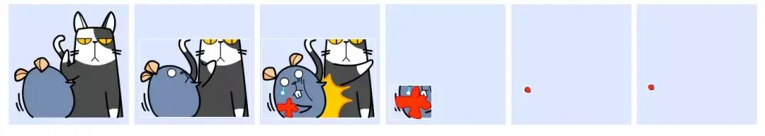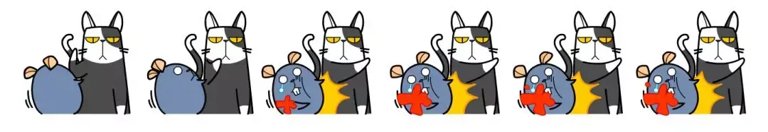 这张表情由 6 幅静态图构成,每幅图片有一定的存活时间,连贯播放就形成了动画: