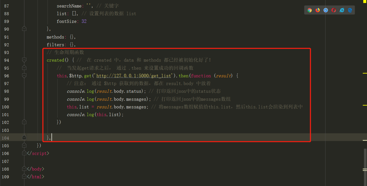 已经可以通过后端的get请求数据,渲染到列表中了。但是下面还可以优化一下,判断json请求是否正常。