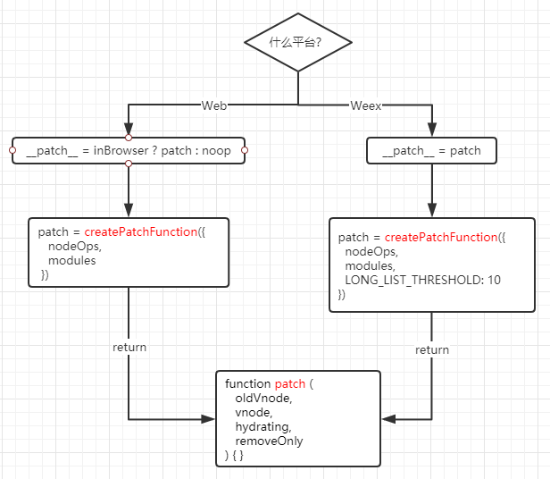 Vue.prototype.__patch__ = inBrowser ? patch : noop