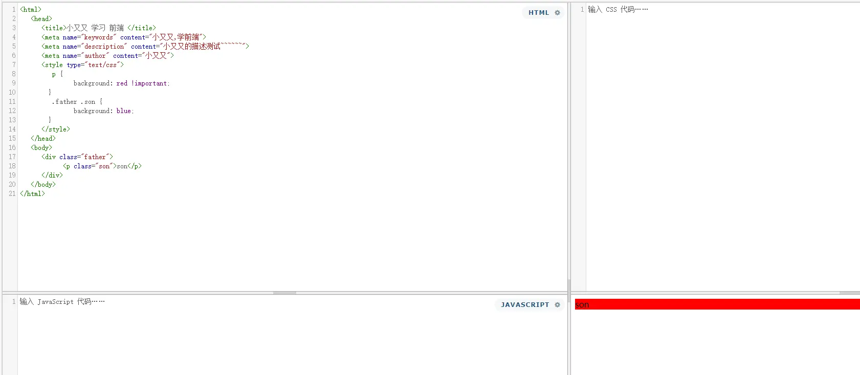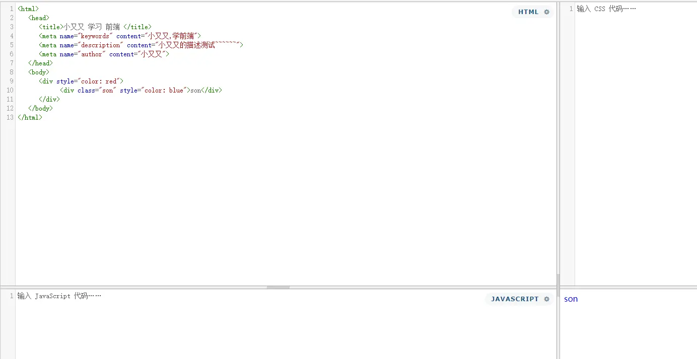 <!-- 类名为 son 的 div 的 color 为 blue -->
