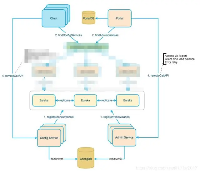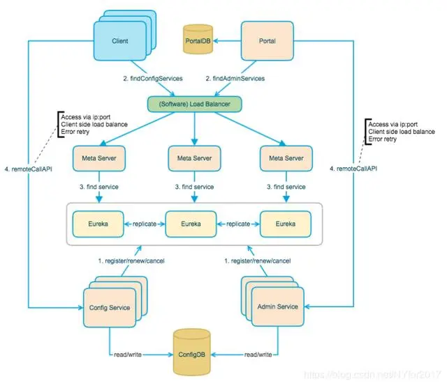 - Client和Portal可以通过Eureka发现ConfigService和AdminService的地址列表。