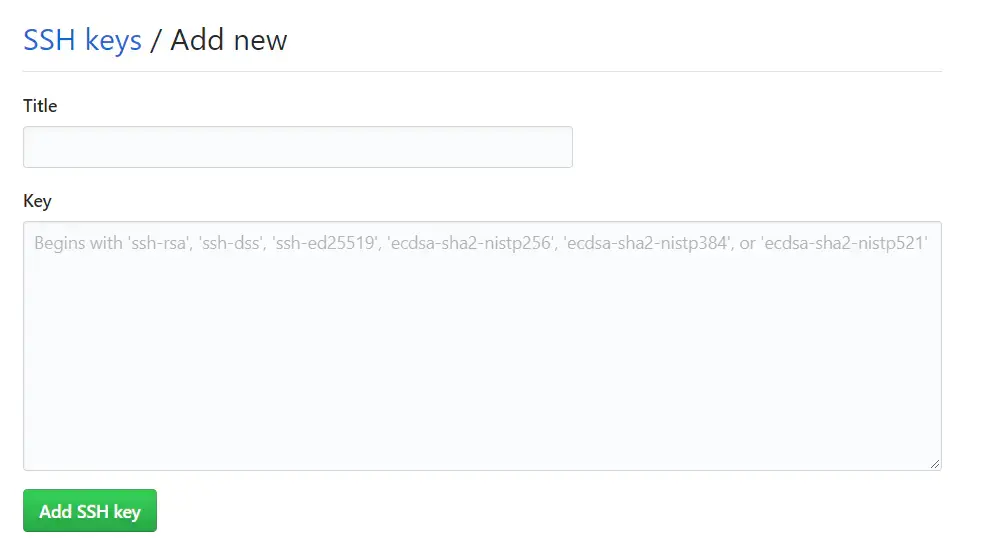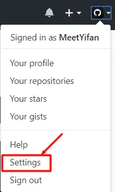 点击右上角个人头像后选择 Settings -> SSH and GPG keys -> New SSH key