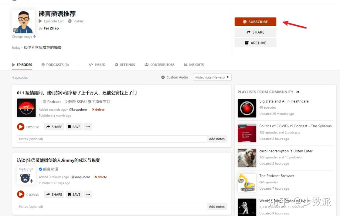以少数派这期内容举例,点击节目页面的「community」可以发现有同好把这期节目添加到了他的「小宇宙备用节目库」,如果你愿意也可以随时留下对节目的评论。