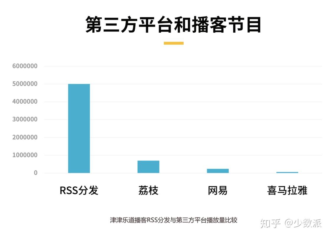 国内开播四年相对老牌的播客栏目「津津乐道」在之前的节目中提到其所有节目的播放量已经接近 600 万次,下图来自其官方公众号。