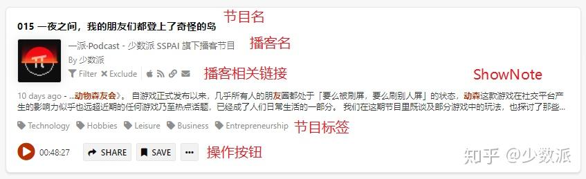 点击标题后进入节目对应页面,shownote 的内容和格式都可以完整呈现,这一点很多播客客户端都做不好。