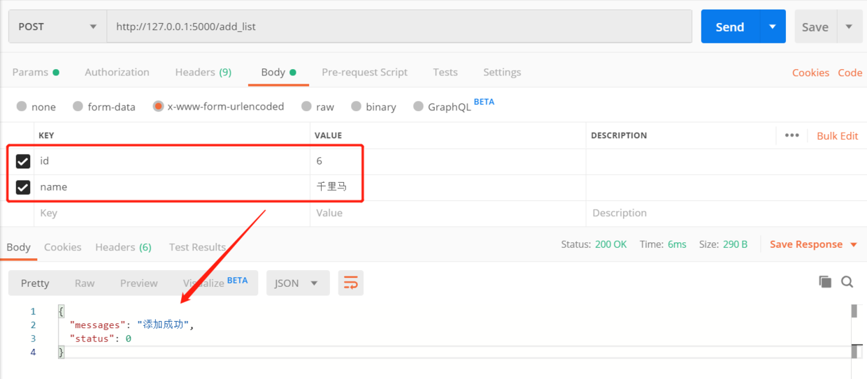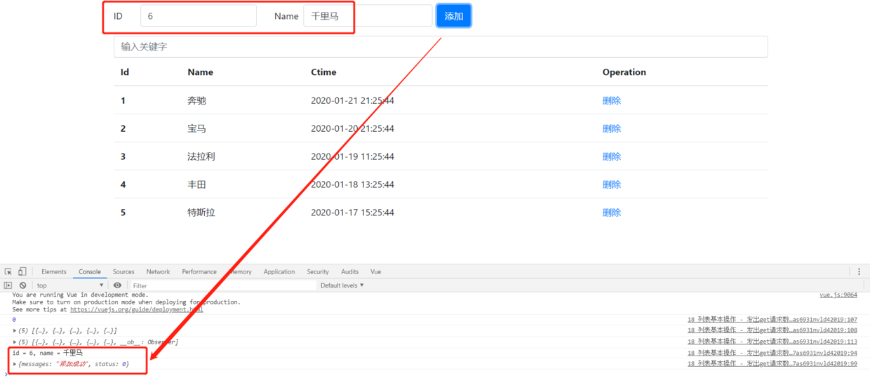 add_list()的视图函数。 - 前端设置post请求进行数据添加,然后执行get请求获取添加后的数据。