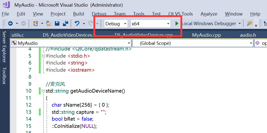 另外需要注意的是,我们在选择 x86 或 x64时,也要注意是否与我们前面编译的 ffmpeg 是一致的?如果你的 ffmpeg 编译出的是 x86 的,在 VS 中也只能选择输出是x86程序。