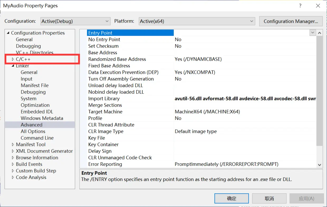 选择好输出是 x86 或 x64 之后,接下来我们就要给工程指定 ffmpeg 的头文件路径了。