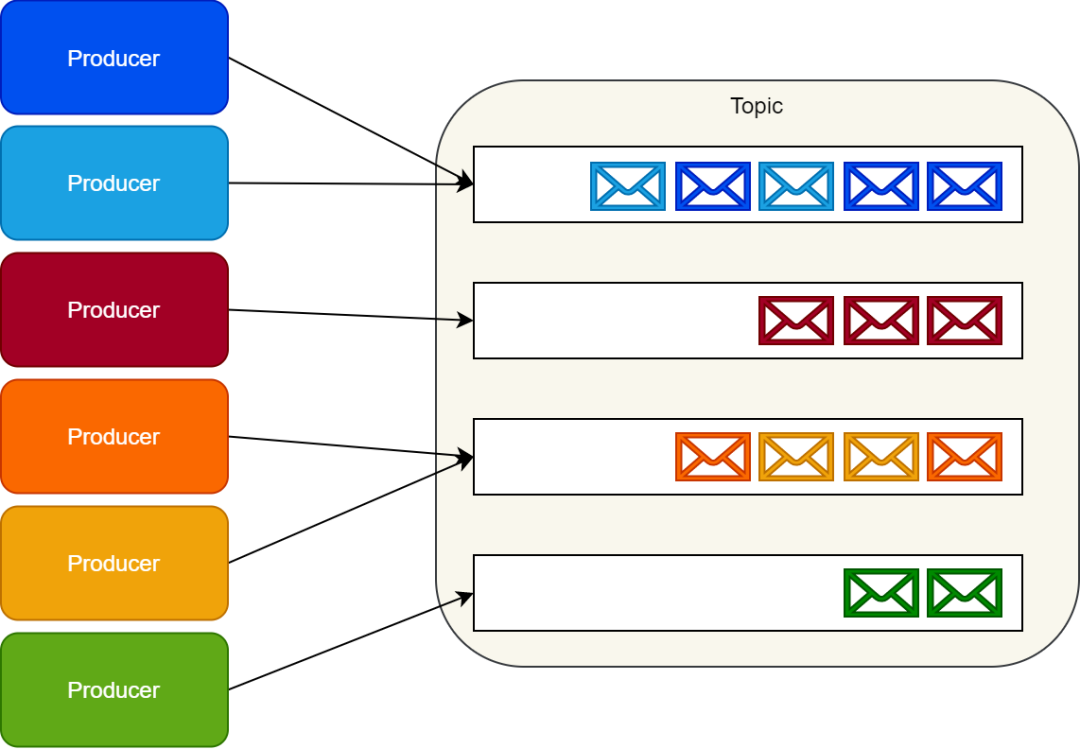 利用消息队列可以解耦生产者和消费者。多个生产者可以向同一个消息队列发送消息;但是,一个消息在被一个消息者处理的时候,这个消息在队列上会被锁住或者被移除并且其他消费者无法处理该消息。也就是说一个具体的消息只能由一个消费者消费。