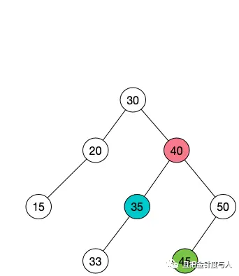 假设图中40(红色)的节点为当前节点,那么35(蓝色)节点为前驱节点,45(绿色)节点为后继节点。