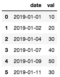 d['date'] = ['2019-01-01', '2019-01-02', '2019-01-04', '2019-01-07',