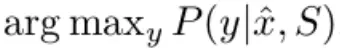 具体地,它尝试获得一个从支持集S(support set, 由k个样本及其标签组成)到分类器y^的一个映射,该映射是一个网络:P(y^|x^,S),它基于当前的S,对每个未见过的测试样本x^给出其标签y^,该标签让P达到最大值。这个模型可以表示为如公式1),其中a是一个attetion。
