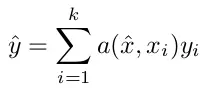 即一个新样本的输出(即在S上类别的分布)是S上的类attation线性组合,也就是对于离x^最远的xi,其在某度量下的attation是0, 那么其值就是和x^相似的xi所对应标签的权重融合。