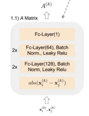 在构建边模型时,先采用一个4层的CNN网络获得每个节点特征向量,然后将节点对xi,xj的差的绝对值过4层带Batch Norm和Leaky Relu的全连接层,从而获得边的embedding,如图10的左侧。随后,我们将节点的embedding和边的embedding一起过图卷积网络,从而获得更新后的节点的embedding,如图10的右侧。