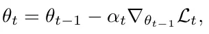 基于梯度下降的参数更新公式如公式5所示,θt-1 是learner在第t-1次updates后的模型参数,αt 是学习率,Lt是损失函数。θt是learner的参数。