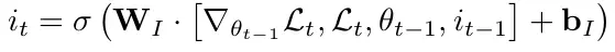 状态Ct为模型参数。it是学习率,如公式7,学习率是当前参数、当前梯度、当前损失和上一次学习率的函数。由此,meta learner 可以精细地控制学习率,从而可以快速地学习而不会发散。