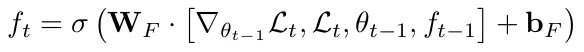ft为忘记门,当learner陷入局部最优,需要大的改变才能逃脱的时候,即梯度为0但损失很大。我们需要忘记以前的值,因此ft 应该是这个信息的函数:
