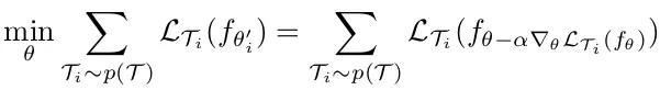 该方法的目标函数如公式9,即训练关于全局模型参数θ的具体任务参数θ‘,使其在从p(T )上采样的各个任务上误差最小。