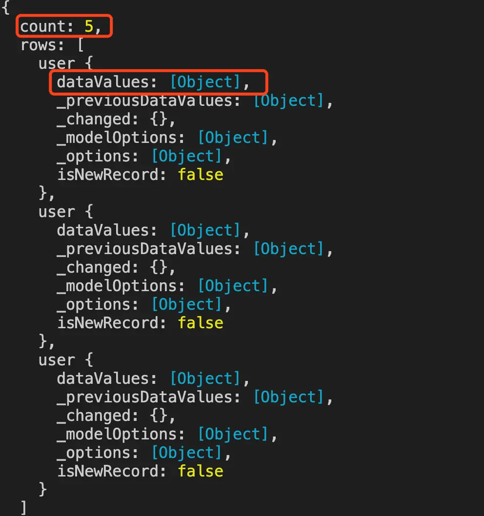 - rows是一个数组 user里面的dataValues就是我们需要的用户信息