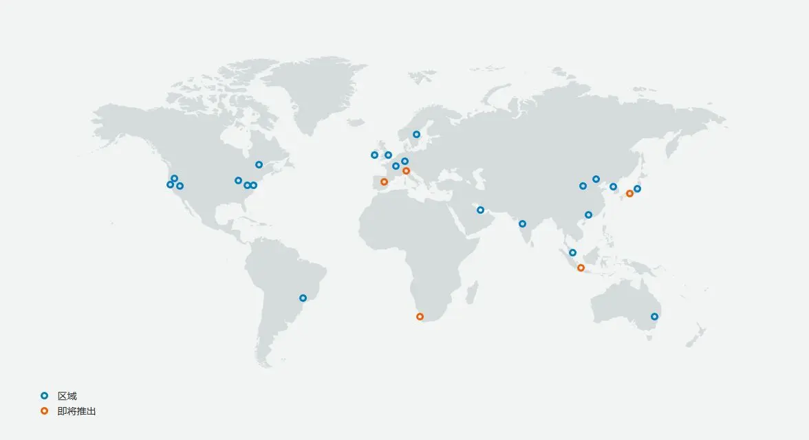 AWS 现在于全球 22 个地理区域内运营着 70 个可用区,较全球第二大云服务提供商具有可用区区域多2倍。AWS目前服务全球245个国家和区域,拥有97个Direct Connet站点和216个节点(截止2020年4月)。