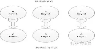 原来的节点A(也可以为一组节点)去和转换后的节点C(也可以为一组节点)比较发现并不相同,则会创建节点C并删除节点A,节点B(也可以为一组节点)比较发现相同不变化,节点C和A比较发现不同,创建节点A,删除节点C.如此,该层的节点就由A B C转化成了 C B A 。