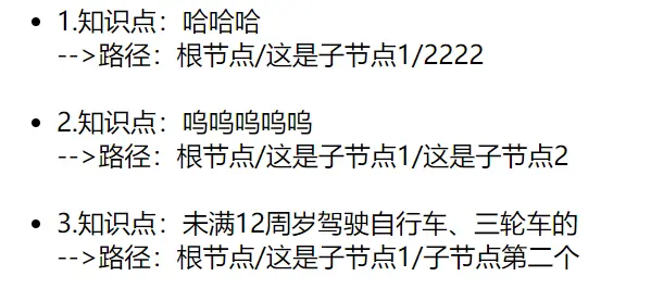 - 现在需要将数据以路径形式展示处理,路径最后一节是知识点(字段answer),其余为node的节点名称(字段name)