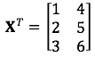 矩阵有一个很重要的运算,就是转置。在矩阵右上角,用大写字母 T 表示。它能让矩阵的行列互换,原本 m x n 的矩阵就变成了 n x m 的新矩阵。例如原本