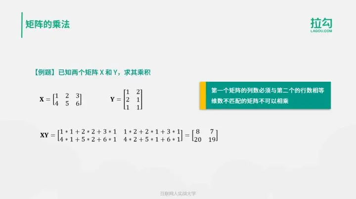 这里需要注意,矩阵的乘法对维数有严格要求。第一个矩阵的列数必须与第二个的行数相等。维数不匹配的矩阵不可以相乘。