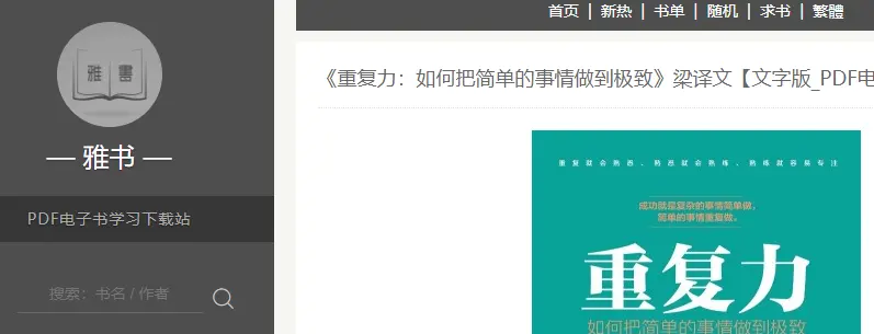 雅书是个很不错的网址;各类的书籍都有很齐全;知识追寻者打算未来有空的时候多拓展下知识面;学习一下计算机类以外的书籍;那么雅书这个网站很有可能就是知识追寻者的首选网站;