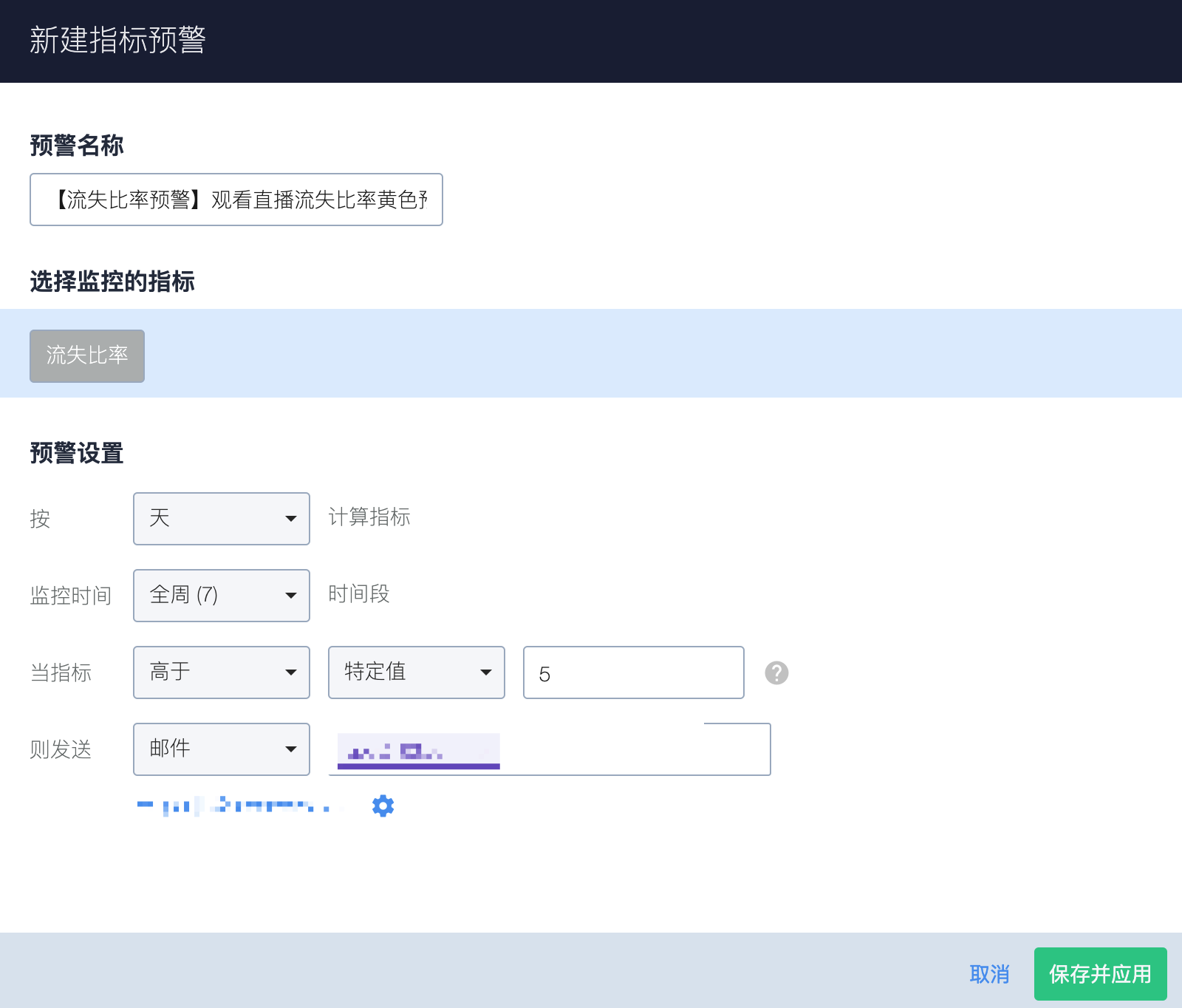 配置完成后,若流失比率高于 5%,将自动发送预警邮件,提醒运营同学防止事态恶化。