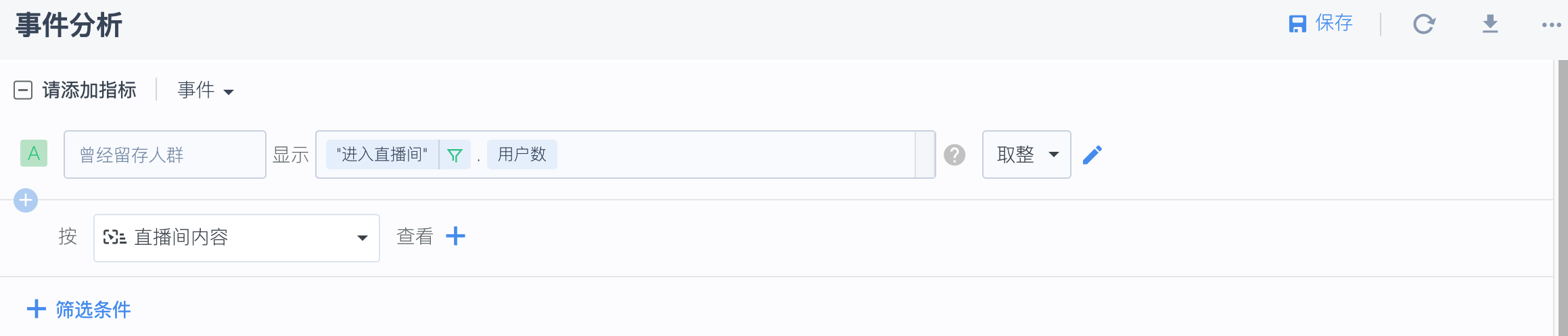 在设置完事前预警后,我们仍应分析促使这群用户留存的原因与流失的原因,具体的分析方式,通过事件分析,按“直播间名称”或“直播间标签”分组查看即可。