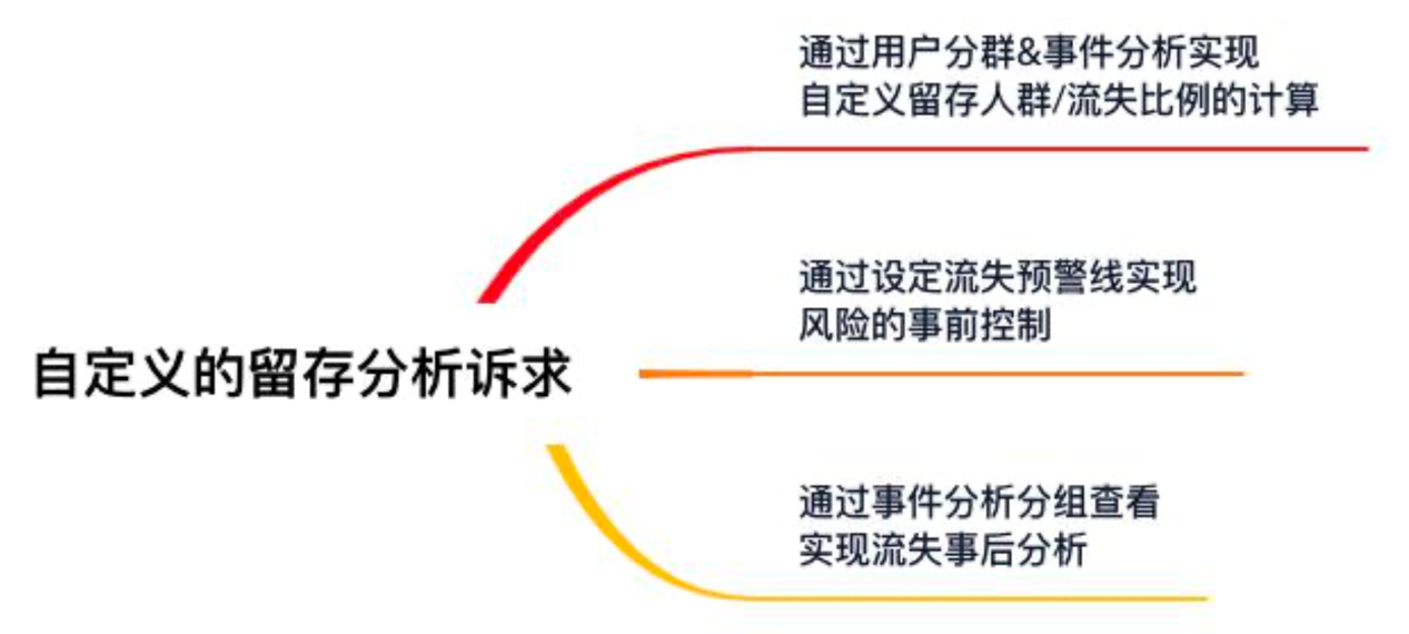 我们可以通过用户分群和事件分析得以实现自定义的留存人数、流失比率的计算。