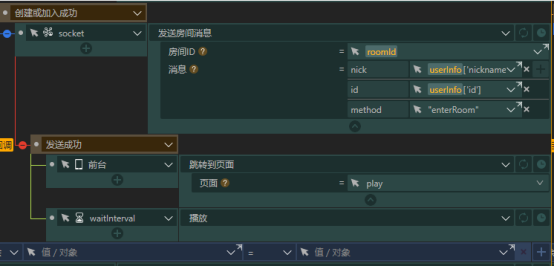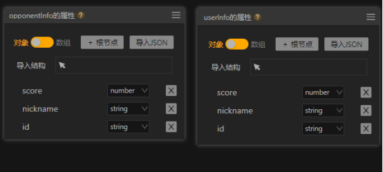 roomID存放连接创建的房间的ID号;opponentInfo和userInfo分别存放对手和自己的信息,包括得分、昵称和CID码;cid存放的是分享链接中的URL参数,也就是游戏发起人的CID码。