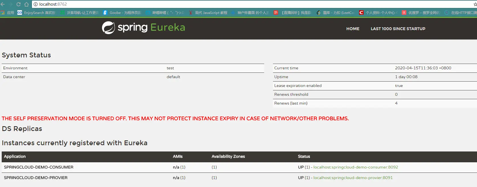 访问地址http://localhost:8762,可以看到界面