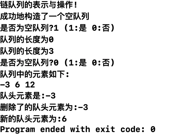 printf("链队列的表示与操作!\n");
