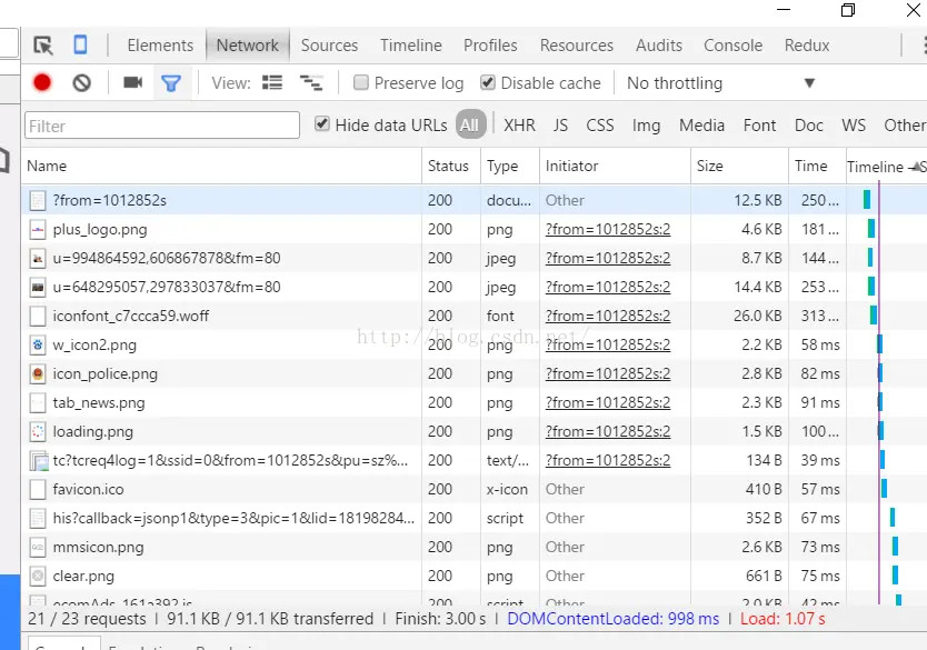 - Network 面板:图表显示页面加载速度;查看页面各资源请求时间( Android );捕获 XHR 请求,查看发送数据、返回头、返回内容等信息。