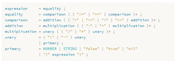 equality → comparison ( ( "!=" | "==" ) comparison )* ;