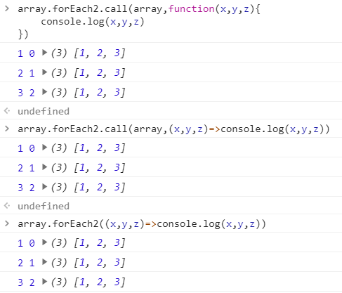 array.forEach2((x,y,z)=>console.log(x,y,z)) //小白写法