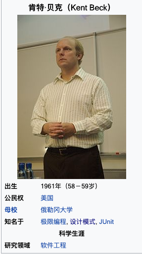 Kent Beck:美国著名软件工程师与作家,在软件工程方面有很大的贡献。他是Smalltalk软件的开发者,设计模式的先驱,测试驱动开发的支持者,也是极限编程的创始者之一。现在Facebook工作。