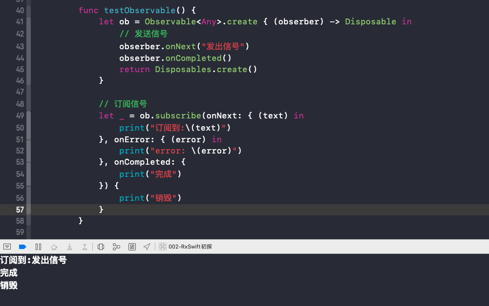 let ob = Observable<Any>.create { (obserber) -> Disposable in
