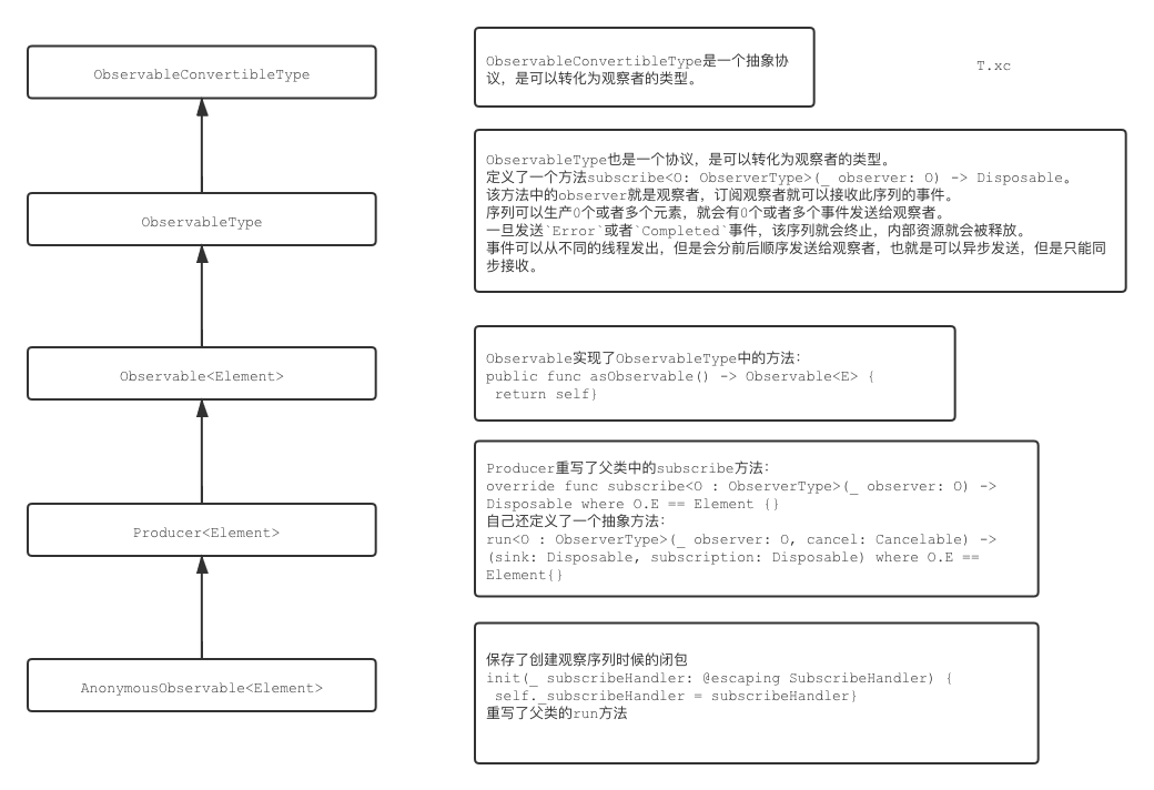 通过代码可以看出,Observable定义了一个泛型,也就是说观察序列中的元素是泛型,万物皆观察序列,不论什么类型的元素都可以被观察。