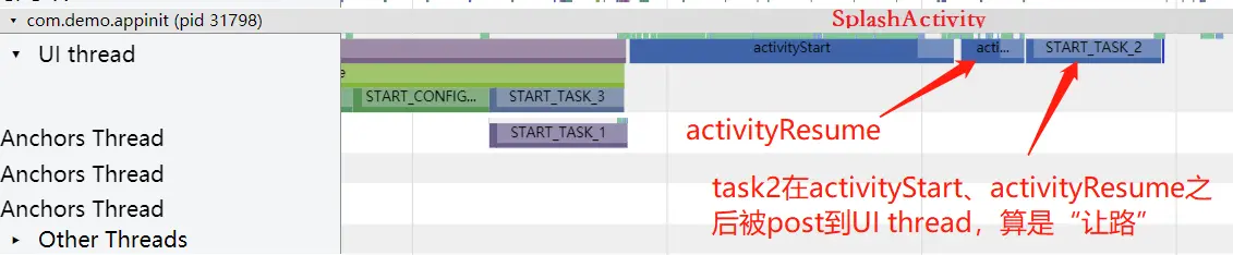 继续往后看,START_TASK_2在启动页的Resume之后执行了,因为它post的时候,ActivityThread.H(主线程Handler)已经把LaunchActivity、ResumeActivity的message发送给了主线程任务队列。
