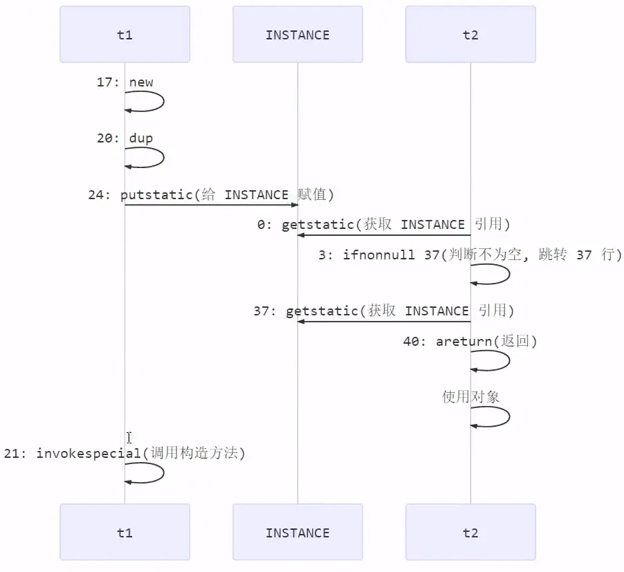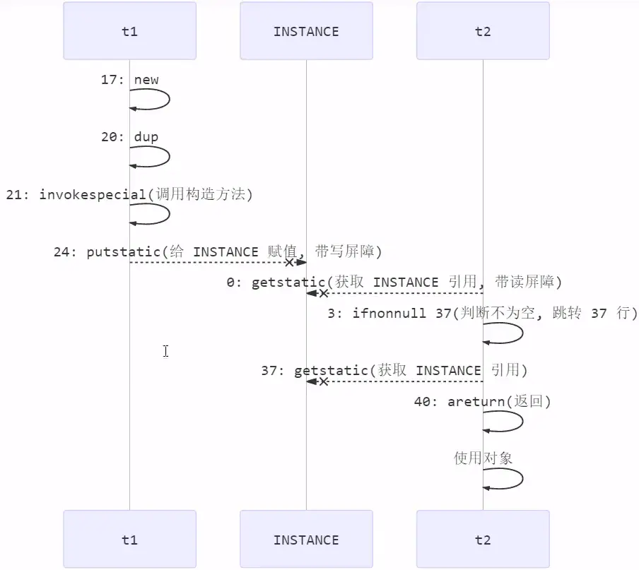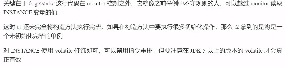 - 有隐含的关键点:第一个if使用了instance变量,实在同步代码块之外,但在多线程的环境下,会存在指令重排序的问题