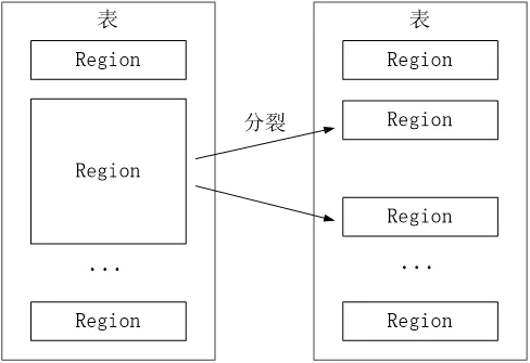 开始只有一个Region,后台不断分裂。Region拆分操作非常快,接近瞬间,因为拆分之后Region读取的仍然是原存储文件,直到“合并”过程把存储文件异步地写到独立的文件之后,才会读取新文件。
