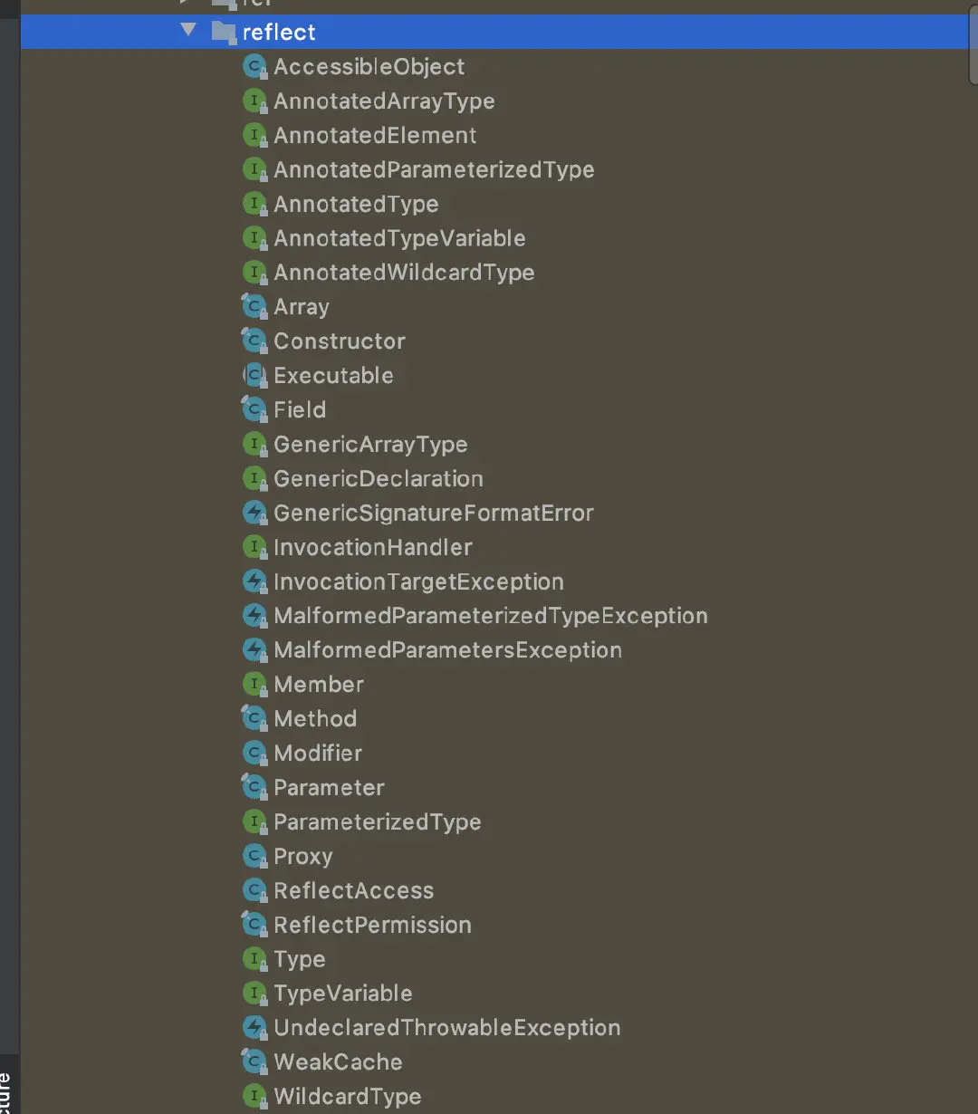 比如上面截图的Method/Field/Constructor这些都是在java.lang.reflect类库下,正是因为这些类库的学习并不难,所以我才一直没写反射的文章。