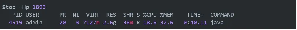 top -Hp 1893,id为4519线程占用cpu最高