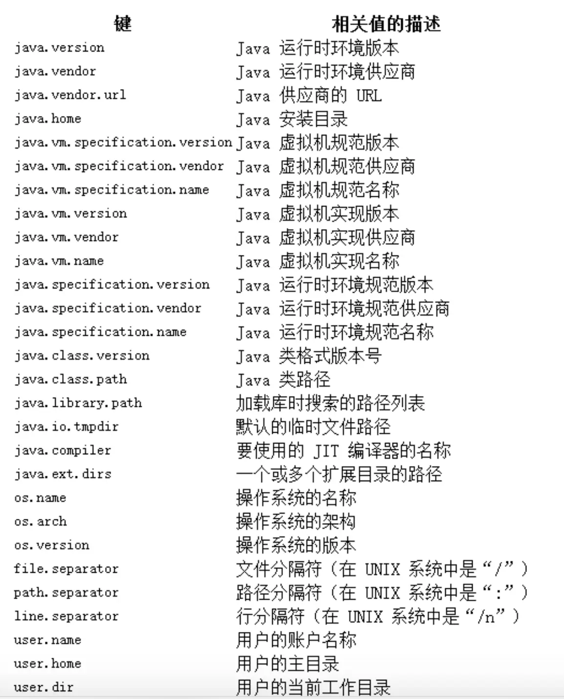 - 确定当前的系统属性(public static getProperties getProperties() )