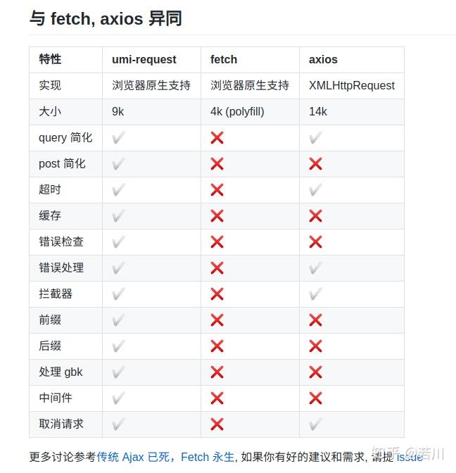 umi-request 与 fetch, axios 异同。