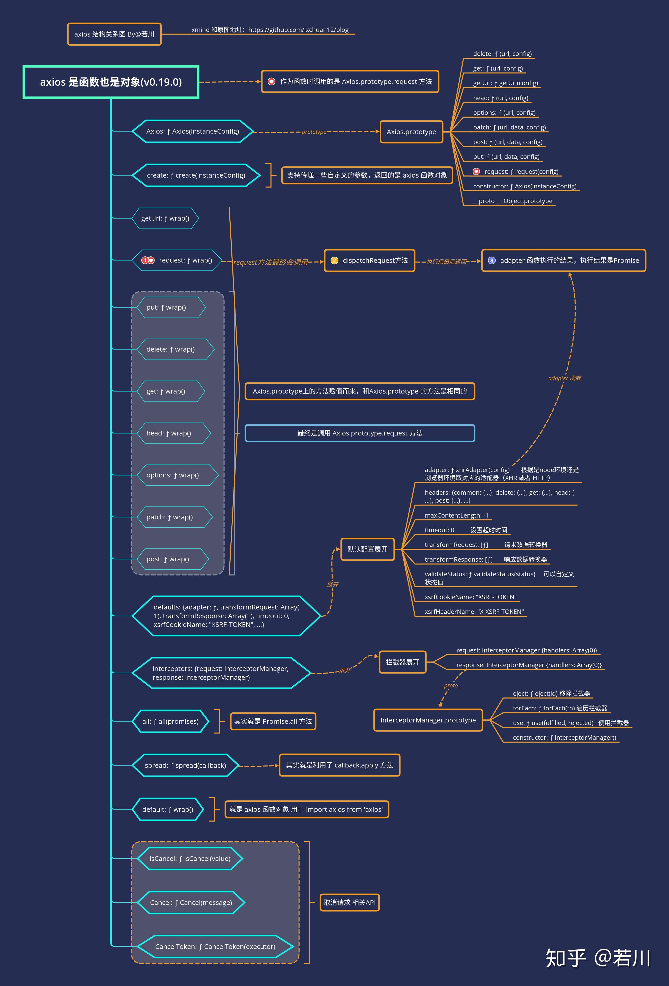 看完结构图,如果看过jQuery、underscore和lodash源码,会发现其实跟axios源码设计类似。